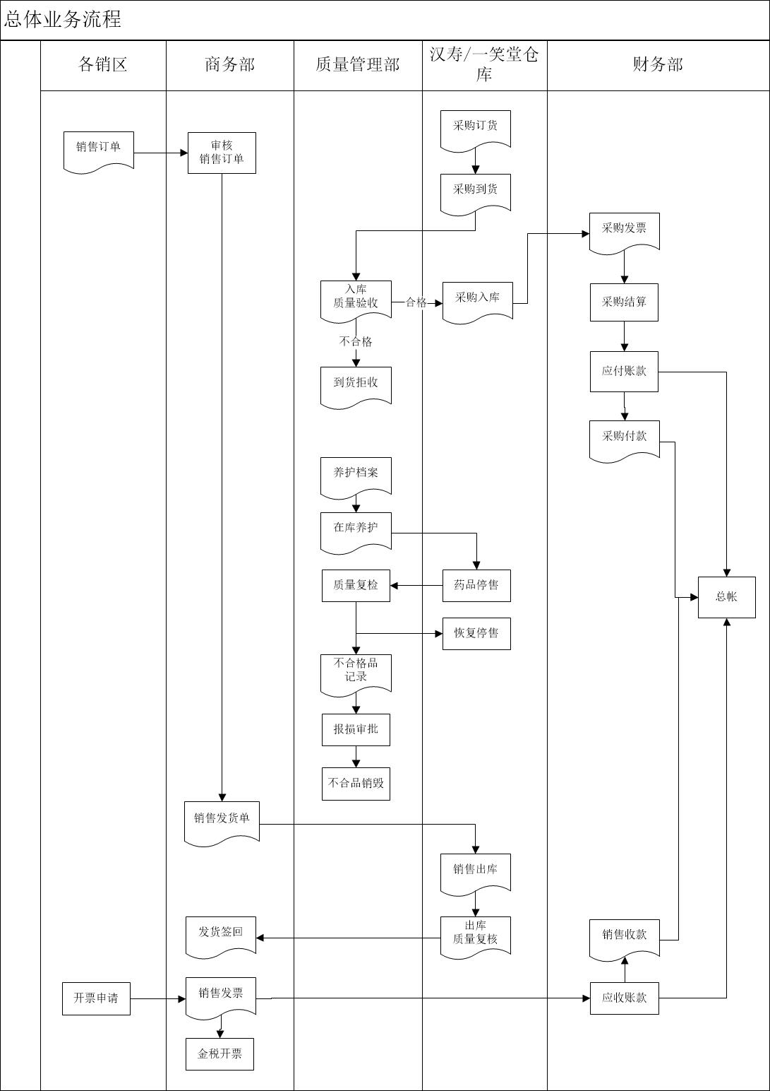 10、銷售部根據(jù)銷區(qū)寄回的銷售合同和和客戶方的入庫單生成“發(fā)貨簽回單”。發(fā)生銷售退貨時,由銷售部開具“銷售退貨單”,質(zhì)量部對退回藥品進(jìn)行檢驗。